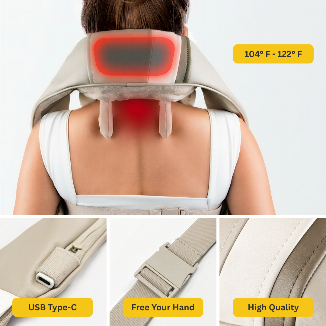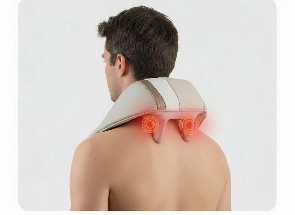 The Massager is designed for the neck, shoulders, and upper back to provide focused relief.